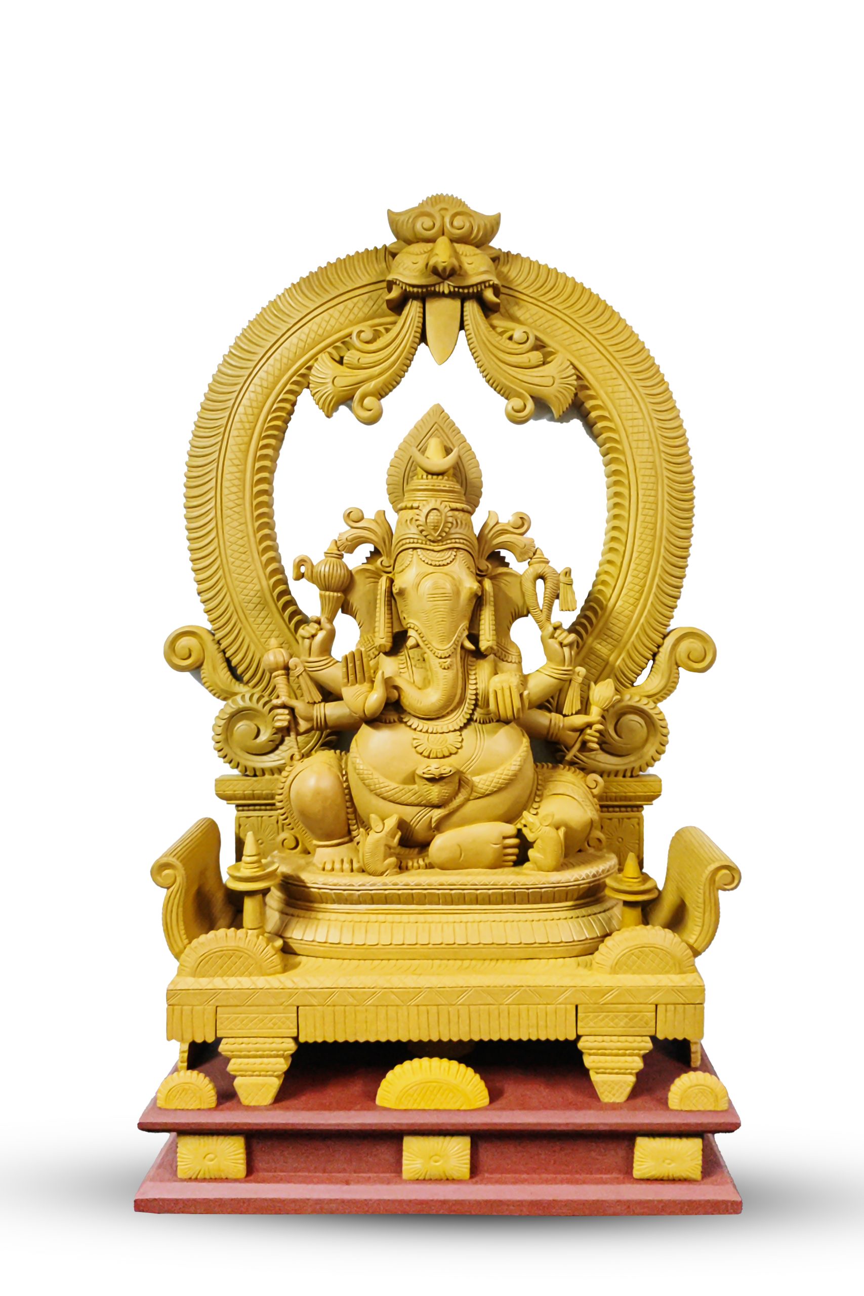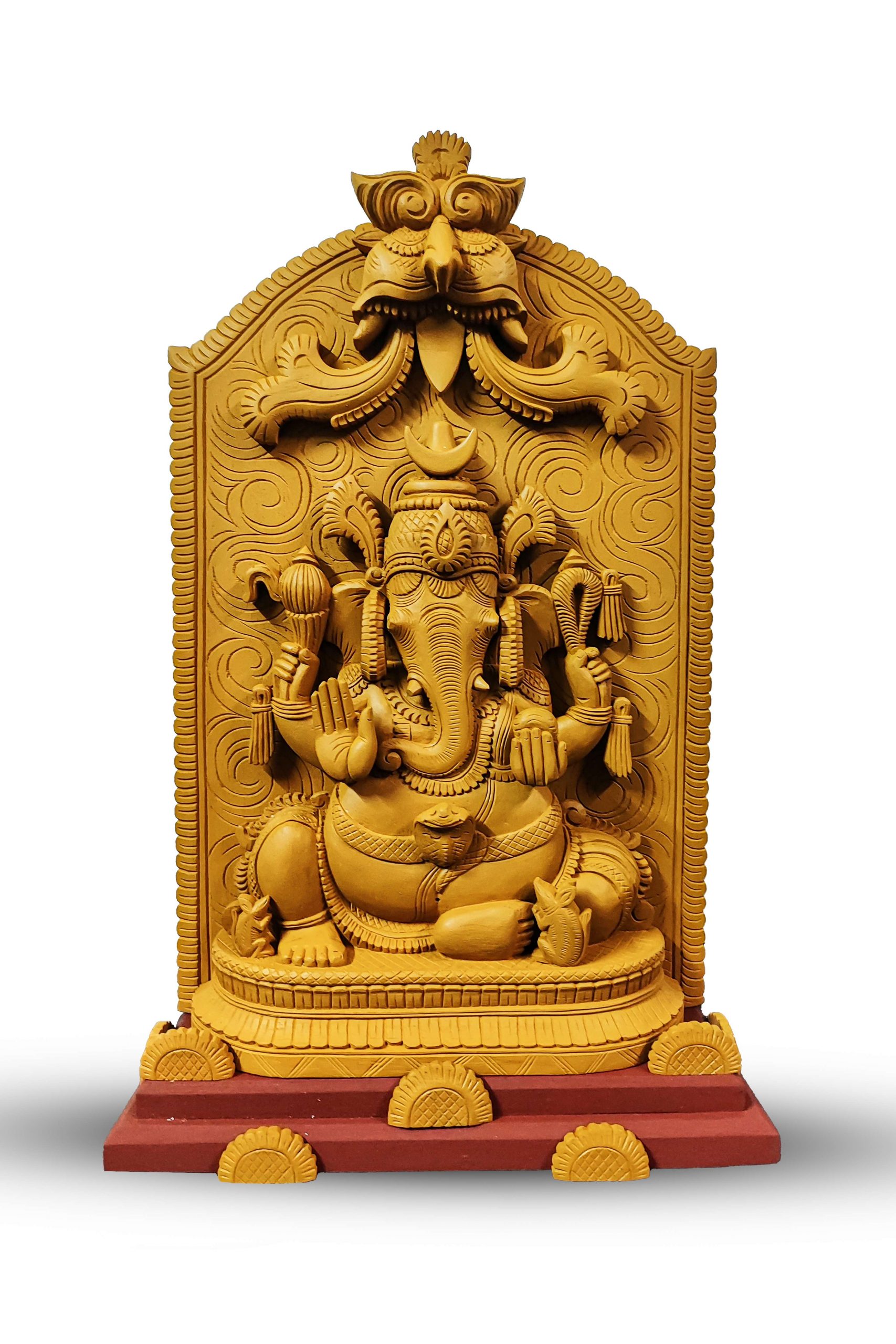 Elegant Design: Features a beautifully sculpted Ganesh seated in a divine posture, symbolizing prosperity and wisdom.