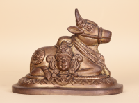 Crafted with precision and attention to detail, this exquisite Brass 4 Inch Nandhi figurine is a stunning addition to any home or office decor. Made from high-quality brass, this beautifully designed piece showcases the divine Nandhi, the sacred bull and vehicle of Lord Shiva, in all its majestic glory. Measuring 4 inches in height, this intricate sculpture is a symbol of strength, power, and protection. Its intricate detailing and intricate craftsmanship make it a perfect focal point for any space. Whether displayed on a mantelpiece, bookshelf, or altar, this Nandhi figurine is sure to captivate all who lay eyes on it. The shiny brass finish adds a touch of elegance and sophistication to any room, while the compact size makes it easy to place anywhere you desire. This timeless piece not only serves as a decorative accent but also carries a spiritual significance, bringing blessings of prosperity and harmony into your home. Ideal for gifting or personal use, this Brass Nandhi figurine is a timeless treasure that will be cherished for years to come. Whether you are a believer in Hindu mythology or simply appreciate the beauty of sacred art, this figurine is sure to inspire awe and admiration. Add a touch of divine grace to your space with this stunning Brass 4 Inch Nandhi figurine. Embrace the rich cultural heritage and spirituality it embodies, and let its presence bring joy and tranquility into your life. A true masterpiece that is both visually appealing and