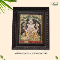 Welcome auspicious beginnings and divine blessings into your home with the Ganapathi Thanjavur Painting from Poompuhar. This magnificent artwork portrays Lord Ganapathi (Ganesha), the remover of obstacles and the deity of wisdom, prosperity, and success, crafted in the classical Thanjavur (Tanjore) painting tradition of Tamil Nadu.