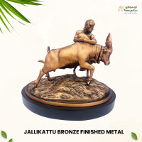 Celebrate the valor and cultural heritage of Tamil Nadu with the Bronze Finish Metal Jallikattu Sculpture from Poompuhar (Tamil Nadu Handicrafts Development Corporation). This beautifully crafted sculpture depicts the thrilling moment of Jallikattu, a traditional rural sport that symbolizes courage, strength, and pride.