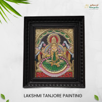 Invite divine blessings and timeless artistry into your home with the Lakshmi Thanjavur Painting from Poompuhar. This exquisite artwork showcases Goddess Lakshmi, the deity of wealth, prosperity, and abundance, crafted in the renowned South Indian Tanjore painting style known for its rich colors, embossed detailing, and radiant gold foil work.