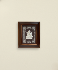 This exquisitely crafted Lakshmi silver frame is a timeless piece that exudes elegance and charm. Made from high-quality silver, this frame showcases intricate detailing and a sleek design that adds a touch of sophistication to any space. Featuring a beautifully engraved image of the goddess Lakshmi, this frame is a symbol of prosperity, wealth, and good fortune. Whether displayed in your home or office, it serves as a constant reminder of abundance and blessings in your life. The silver frame is not only aesthetically pleasing but also durable and long-lasting. Its sturdy construction ensures that your precious artwork or photograph is securely protected and displayed in style. The sleek silver finish adds a touch of glamour to any room, making it a versatile piece that complements any decor style. This Lakshmi silver frame makes for a thoughtful and meaningful gift for loved ones on special occasions such as weddings, housewarmings, or festivals. It is a unique and thoughtful way to convey your best wishes and blessings to those dear to you. Add a touch of elegance and prosperity to your space with this stunning Lakshmi silver frame. Display it prominently in your home or gift it to someone special to bring joy and blessings into their life. With its timeless design and symbolic significance, this frame is sure to be cherished for years to come.