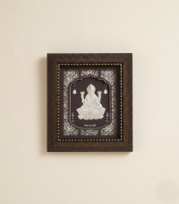 This exquisitely crafted Lakshmi silver frame is a stunning addition to any home decor. The intricate detailing on the frame showcases the beauty and grace of the goddess Lakshmi, symbolizing wealth, prosperity, and good fortune. Made from high-quality silver, this frame exudes elegance and sophistication. The sleek design and smooth finish make it a timeless piece that will complement any space. Whether displayed on a mantelpiece, shelf, or wall, this frame is sure to catch the eye and spark conversation. The Lakshmi silver frame is not only a beautiful decor piece but also holds spiritual significance. Lakshmi is the goddess of prosperity and abundance in Hindu mythology, and having her presence in your home is believed to invite blessings of wealth and success. This frame is versatile and can be used to display photos, artwork, or even as a standalone decor piece. Its neutral silver color makes it easy to pair with any color scheme or style, making it a versatile addition to your home decor collection. Elevate your living space with the Lakshmi silver frame and invite positive energy and prosperity into your home. Whether you're a believer in the power of goddess Lakshmi or simply appreciate beautiful art, this frame is sure to make a statement in your home. Invest in this timeless piece today and bring a touch of elegance and spirituality to your living space.