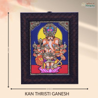 Thanjavur Painting Kan Thiristi Ganesh is a stunning traditional masterpiece that captures the essence of Indian heritage and culture. This unique artwork displays Lord Ganesh, the remover of obstacles, in all his divine splendor, bringing blessings and positivity to any space it graces. Crafted meticulously by skilled artisans using time-honored techniques, this painting showcases intricate details, vivid colors, and rich textures that make it truly one-of-a-kind. The use of 22-karat gold foil adds a touch of opulence and radiance, elevating the overall aesthetic appeal of the piece. Ideal for art collectors, spiritual enthusiasts, or anyone looking to add a touch of elegance to their home décor, this Thanjavur painting is a timeless treasure that is sure to be admired by all who lay eyes on it. Whether displayed in a living room, bedroom, or office, it serves as a focal point that sparks conversation and admiration. The durable materials and fine craftsmanship ensure that this painting will stand the test of time, maintaining its beauty and vibrancy for years to come. Its classic design and traditional motifs make it a versatile piece that complements various interior styles, from traditional to contemporary. Invest in this exquisite Thanjavur Painting Kan Thiristi Ganesh to infuse your space with cultural richness, artistic excellence, and a sense of spirituality. Let the divine presence of Lord Ganesh inspire and guide you through life's journey, bringing luck and prosperity along the way. Embrace tradition,