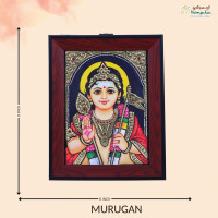 This exquisite Thanjavur Painting of Murugan is a true masterpiece that beautifully captures the essence and vibrancy of Indian art. Handcrafted with meticulous attention to detail, this painting showcases the divine beauty of Lord Murugan, also known as Kartikeya, the Hindu god of war and victory. Every stroke of this painting is infused with rich heritage and tradition, originating from the ancient city of Thanjavur in Tamil Nadu, India. The use of vibrant colors, intricate gold foil work, and precious gemstones makes this painting truly unique and stunning. The intricate details and meticulous craftsmanship make it a timeless piece of art that will surely enhance the decor of any home or office. One of the key features of this Thanjavur Painting is its ability to evoke a sense of spirituality and peace. The image of Lord Murugan exudes a sense of calmness and serenity, making it the perfect addition to any sacred space or meditation room. Whether you are a collector of Indian art or simply looking to add a touch of elegance to your surroundings, this painting is sure to captivate your heart and soul. In addition to its aesthetic beauty, this Thanjavur Painting also holds symbolic significance and cultural value. It is believed that having a painting of Lord Murugan in your home can bring protection, prosperity, and positive energy into your life. By displaying this revered deity in your living space, you are inviting blessings and good fortune to enter your home. This Thanjavur Painting