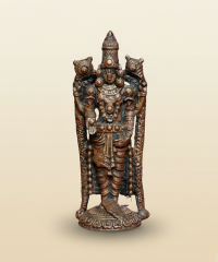 Crafted with exquisite attention to detail, the bronze 4 inch balaji statue is a stunning piece that will add a touch of elegance to any home or sacred space. This intricately designed statue depicts Lord Balaji, a popular and beloved deity in Hinduism known for his benevolence and strength. Made from high-quality bronze, this 4 inch statue showcases the fine craftsmanship and artistry of skilled artisans. The rich bronze color adds a timeless appeal to the piece, making it a focal point in any room. The compact size makes it perfect for displaying on a tabletop, shelf, altar, or any other special place. This Balaji statue is not only a beautiful decorative piece, but also holds great spiritual significance. Believed to bring blessings of prosperity, protection, and good fortune, having this statue in your home can create a sense of peace and harmony. Whether you are a devoted follower of Lord Balaji or simply appreciate the beauty of Hindu art, this statue is sure to be a meaningful addition to your collection. Elevate your spiritual practice or decor with the BRONZE 4 INCH BALAJI statue. Its timeless design, spiritual significance, and superior craftsmanship make it a must-have for any collector or enthusiast. Add a touch of beauty and symbolism to your space with this exquisite bronze statue of Lord Balaji.