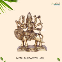 Celebrate the divine strength and grace of Goddess Durga with this exquisitely handcrafted 4-inch Metal Durga with Lion idol. Made from premium quality metal with a polished antique finish, the statue features intricate detailing in Durga’s ornaments, weapons, and serene yet powerful expression, as well as the majestic lion she rides. Compact yet visually striking, it is perfect for pooja rooms, home temples, office desks, or as a decorative devotional piece. This Metal Durga with Lion idol not only serves as a sacred centerpiece but also inspires courage, positivity, and protection, making it an ideal gift for devotees and spiritual enthusiasts.