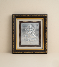 Crafted with finesse and elegance, this stunning Ganesh figurine exudes a timeless charm that will add a touch of sophistication to any space. Made from high-quality silver, the intricate detailing and craftsmanship of this piece beautifully capture the essence of Lord Ganesh. Standing tall and majestic, this silver frame Ganesh is a symbol of wisdom, prosperity, and good fortune. Its compact size makes it versatile enough to be displayed on a mantel, desk, or shelf, making it a perfect addition to your home decor or office space. The silver frame adds a touch of glamour and luxury to the piece, making it a standout accent in any room. This Ganesh figurine also serves as a meaningful and thoughtful gift for loved ones, bringing blessings of success and positivity into their lives. Whether you are a devout follower of Lord Ganesh or simply drawn to the spiritual and artistic symbolism he represents, this silver frame Ganesh is sure to inspire and uplift you. Embrace the divine energy and symbolism of this powerful deity with this exquisite figurine. Embodying grace and majesty, this silver frame Ganesh is a testament to the rich cultural heritage and spirituality of India. Illuminate your living space with the presence of this divine symbol and invite peace, prosperity, and blessings into your life. Experience the beauty and serenity of Lord Ganesh with this exquisite silver frame figurine. Elevate your home decor with a touch of spirituality and grace, and bask in the positive energy that this sacred