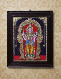 Capture the essence of divine grace and spiritual energy with this exquisite Tanjore Painting of Murugan. Handcrafted by skilled artisans, this 15x12 inch piece is a true work of art with vibrant colors, intricate embellishments, and gleaming gold foil work that adds a touch of opulence and elegance. Depicting the god of war and victory, Murugan, this painting exudes peace and tranquility, making it a perfect addition to your home or sacred space. Each brushstroke tells a story with meticulous attention to detail, bringing this divine figure to life. Whether you're a collector of Indian art or appreciate traditional craftsmanship, this Tanjore Painting celebrates the rich heritage of Indian culture and mythology. Elevate your living space with this timeless masterpiece that will be cherished for years to come. Experience the beauty and craftsmanship of Tanjore art with this stunning Murugan painting.