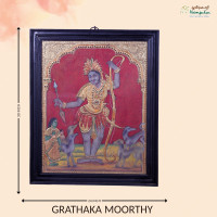 The Thanjavur Painting Grathaka Moorthy is a stunning piece of art that blends traditional craftsmanship with modern elegance. Handcrafted by skilled artisans in Thanjavur, India, this masterpiece showcases intricate details and vibrant colors that make it a truly unique and captivating addition to any home decor. Crafted using the traditional Thanjavur painting technique, this masterpiece features gold foils, semi-precious stones, and vibrant colors that give it a rich and luxurious look. Each brushstroke is carefully applied to create a masterpiece that reflects the rich cultural heritage of South India. Measuring XX inches in width and XX inches in height, this exquisite painting is the perfect size to create a focal point in any room. Whether displayed in the living room, bedroom, or office, it is sure to catch the eye of anyone who sees it. The Grathaka Moorthy depicted in this painting is known for its intricate details and symbolism. It represents prosperity, good fortune, and success, making it an ideal gift for loved ones or a meaningful addition to your own art collection. With its timeless appeal and cultural significance, the Thanjavur Painting Grathaka Moorthy is a must-have for art lovers and collectors alike. Add a touch of elegance and tradition to your home with this exquisite piece of art that will surely be cherished for years to come.