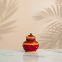 This beautiful round wood kumkumam box is a timeless piece that adds a touch of elegance to any home. Crafted from high-quality wood, this box is perfect for storing kumkumam, a traditional powder used in many South Asian rituals and ceremonies. The intricate detailing on the lid of the box adds a unique charm to its overall design, making it not only a functional storage solution but also a decorative piece that will complement any decor style. The smooth finish of the wood gives it a luxurious feel, making it a pleasure to handle and use. Measuring [dimensions], this compact box is easy to store and display on any tabletop or shelf. Its sturdy construction ensures durability, so you can enjoy using it for years to come. The round shape adds a touch of sophistication to the design, making it a standout piece in your collection of home accessories. Whether you're looking for a practical storage solution or a decorative accent piece, this wood kumkumam box is the perfect choice. Its versatile design makes it suitable for use in any room of your home, from the living room to the bedroom. Bring a touch of tradition and elegance into your home with this exquisite wood kumkumam box. Don't miss out on adding this exquisite piece to your home decor collection. Order now and experience the beauty and functionality of this stunning wood kumkumam box for yourself.